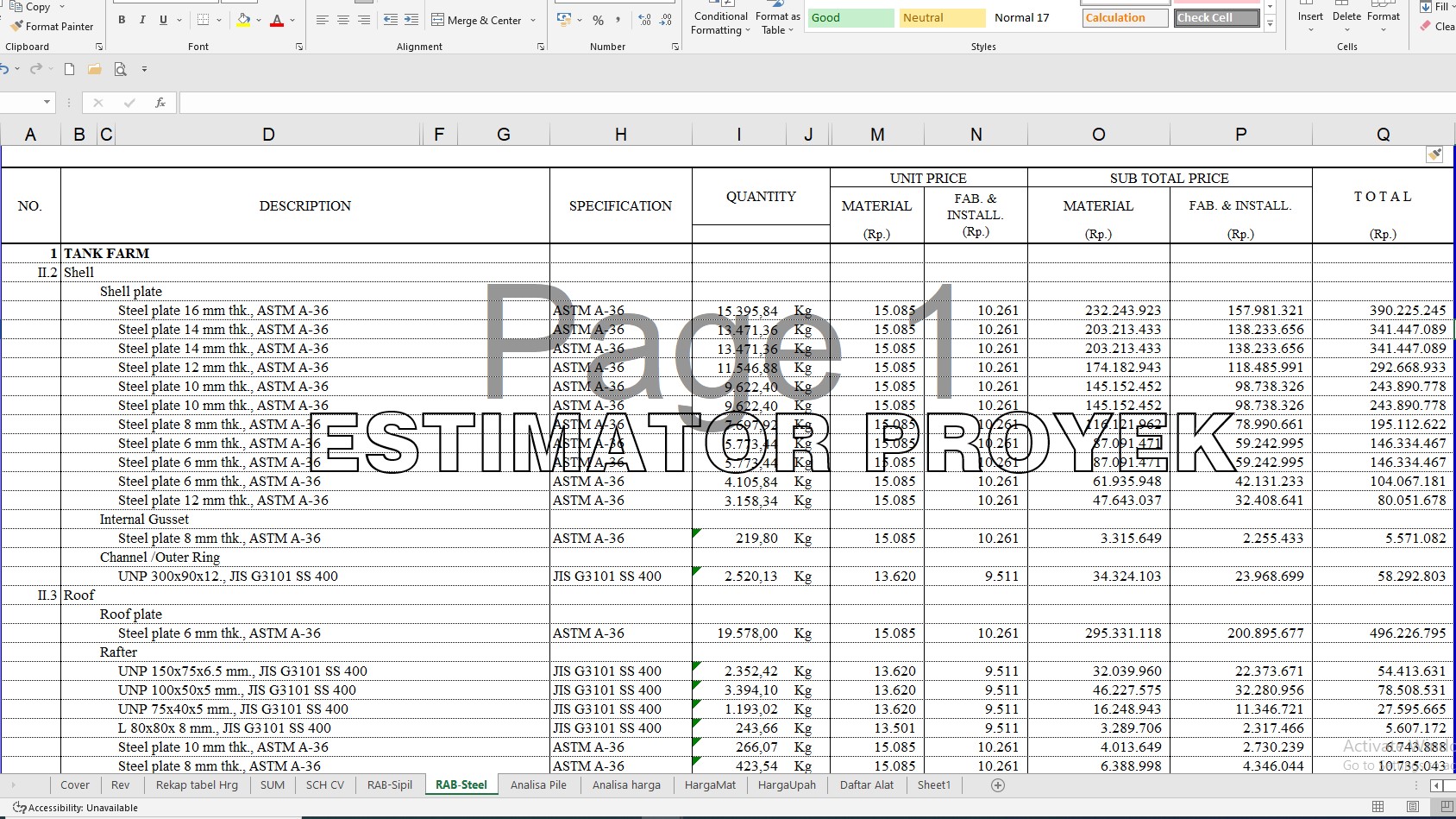 Estimator Proyek Membantu menghitung lebih Cepat dan Akurat untuk Menghitung Rencana Anggaran Biaya ( RAB ) atau Bill Of Quantity ( BQ).