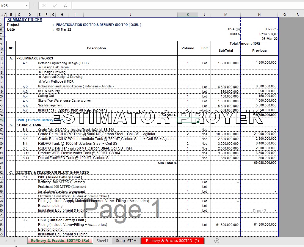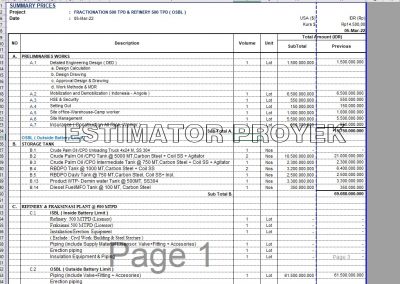 Memperkirakan jumlah kelereng dalam toples atau luas permukaan ruangan relatif lebih mudah dan dapat dilakukan dengan cukup cepat dan akurat dengan cara praktis yang sederhana. Namun, memperkirakan total Estimasi biaya Storage Tank,Pompa dan Pipanya atau Bangunan Pabrik lengkap dengan Mesin Proses Produksinya sedikit lebih rumit.